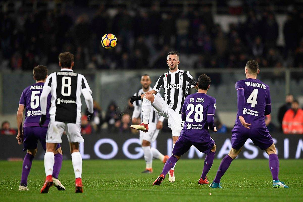 尤文主帅阿莱格里优化了传统 “保守风格”,主打 4-3-3 进攻阵型,战术核心围绕 “传控压制 + 多点进攻” 展开。中场由托纳利、洛卡特利、法乔利组成 “攻防铁三角”,托纳利负责组织调度(场均 2.1 次关键传球),洛卡特利侧重防守拦截(场均 1.9 次抢断),法乔利则灵活前插参与进攻(场均 1.2 次成功突破);进攻端,左边锋基耶萨(场均 2.3 次成功突破)与右边锋迪马利亚(场均 1.8 次关键传球)形成 “边路双翼”,既能突破传中,也能内切射门,中锋弗拉霍维奇则承担支点作用(场均 3.5 次头球争顶成功),为队友创造射门空间。